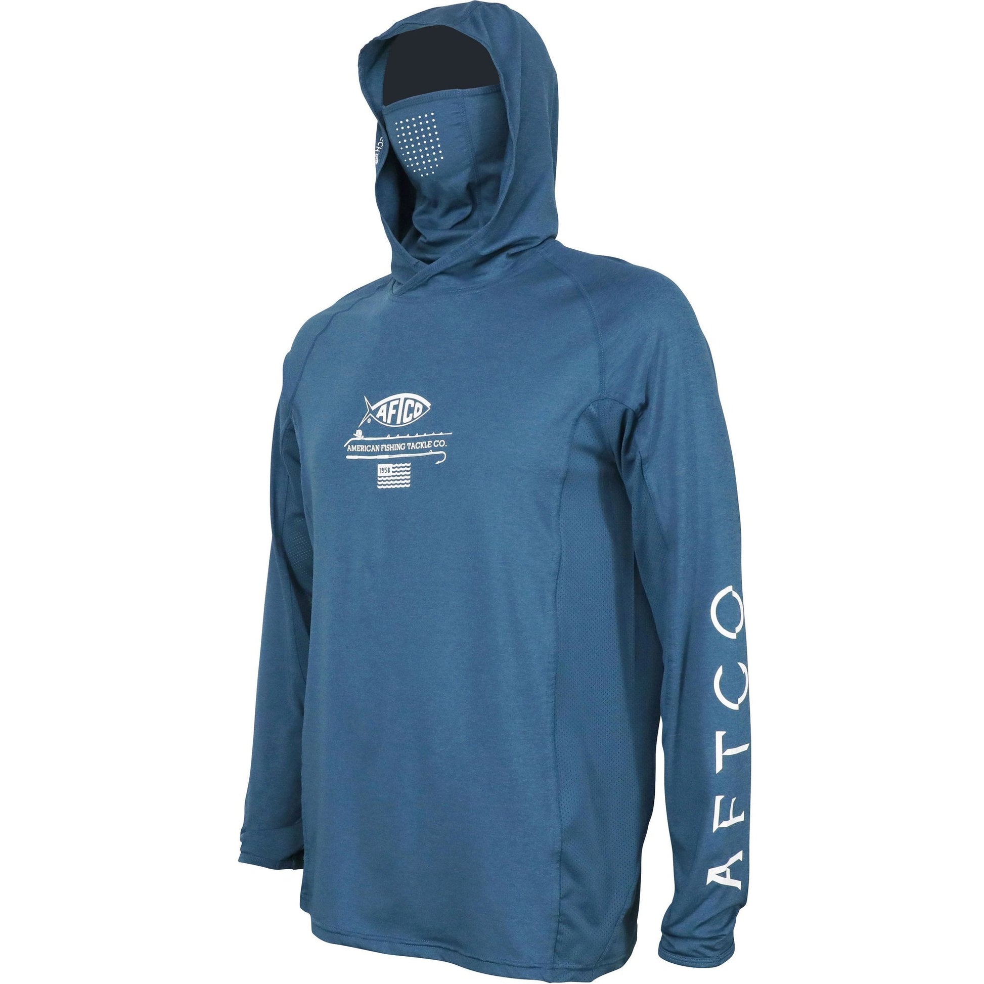 Looking for the best fishing shirt with a built in hood and mask? You've found it. The Barracuda Geo Cool™ fabric utilizes mineral infused cooling technology that will absorb and dissipate heat to keep you cool, dry and comfortable walking the banks or on the boat. Performance fishing hoodies have grown in popularity as anglers have become increasing aware of the need for sun protection. With the Barracuda we've taken that one step further by building a fishing neck gaiter and hood into the body of this performance shirt. The fishing face shield with laser cut holes offer additional UV protection and comfort. Packed with AFTECH performance fishing features, an angler can stay comfortable with AFBLOCK UPF50, AFCOOL and AFGUARD. Help AFTCO in our conservation efforts by supporting a sustainable hooded fishing shirt, minimizing the impact on the environment stamped with the approval from Bluesign® as this Geo Cool UV protection fishing shirt was made with conservation in mind.