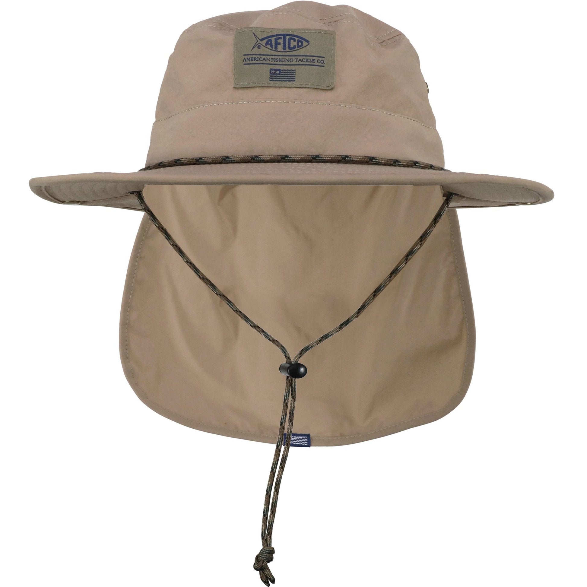 Dont be caught at the dock without the AFTCO Dockline Booney hat. Like some "Boonie" hats with neck flap, the Dockline hat features a lightweight 100% Nylon construction, but the Dockline has a secret too. The secret pocket allows you to hide the neck flap when no necessary. When neck flaps are detavchable they end up getting lost, so the Dockline Boonie hat has a foldaway neck cape that tucks into a pocket. When its needed, it is as easy as taking it out of the pocket.Â