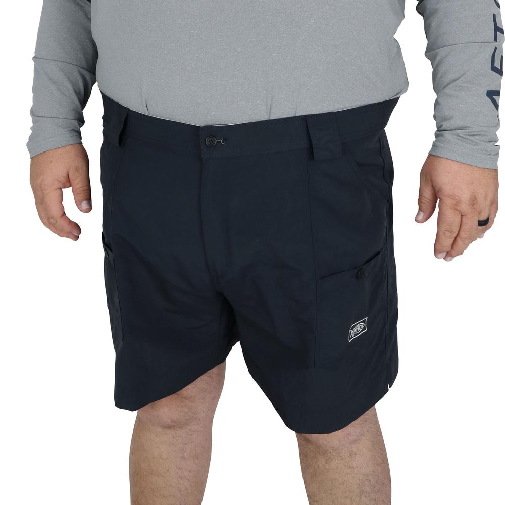 AFTCO Original mens fishing shorts is now available for Big Guys! Constructed with an extremely strong and supple fabric Dupont Supplex 3-ply nylon which has been treated with a stain resistant coating. These mens fishing shorts are just like the well known MO1 short, but offer a little more length. Fisherman and outdoorsman will love the lightweight and super comfortable fit. It has 7 pockets (including a cordura-lined pliers pocket) so you will have a place for everything. Along with a double layered rear for strength. 27 bar tacks keep it strong in all the right places. AFTCO embroidery on left pocket. 18" outseam length. Elastic waist + belt loops. If the M01 is a little too short for you, the M01L will likely be just right for the Big Guy. Â