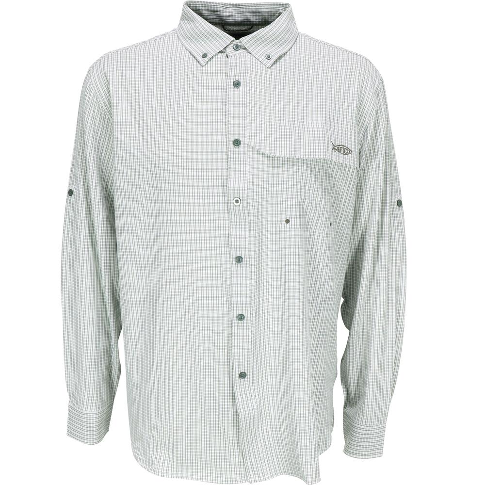 Fish off the stern? There always are in the AFTCO Stern Long Sleeve Button Down Shirt. The features are endless in this long sleeve button down fishing shirt. Enjoy the 90% polyester 10% spandex blended shirt giving you a ton of comfort in the hot sun, and dont worry about the suns rays because the Stern boasts UPF 50 sun protection protecting you from 98% of sun's harmful rays. Vertical rear vents allow body heat to escape efficiently and that helps with the 4 way stretch and lightweight fabric making this the lightest best long sleeve shirt for fishing.Â